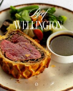 Nuestra propuesta gastronómica ofrece platillos europeos clásicos con un toque moderno: Beef Wellington, Fish & Chips, Burrata con pesto, Carpaccio de res, Pork Ribs en salsa agridulce, Filete Mignon con salsa Bordelesa, Pimienta o Morillas, y especialidades del mes que estarán también disponibles para ti.